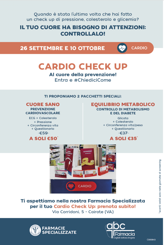 La nostra farmacia è lieta di invitarti alle nostre giornate di CARDIO CHECK-UP: